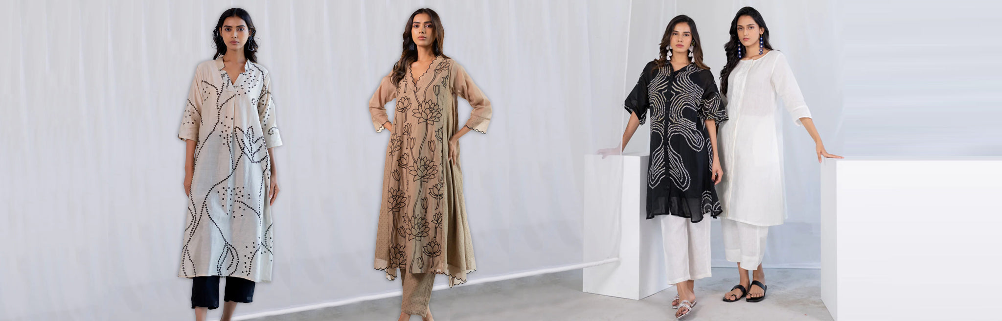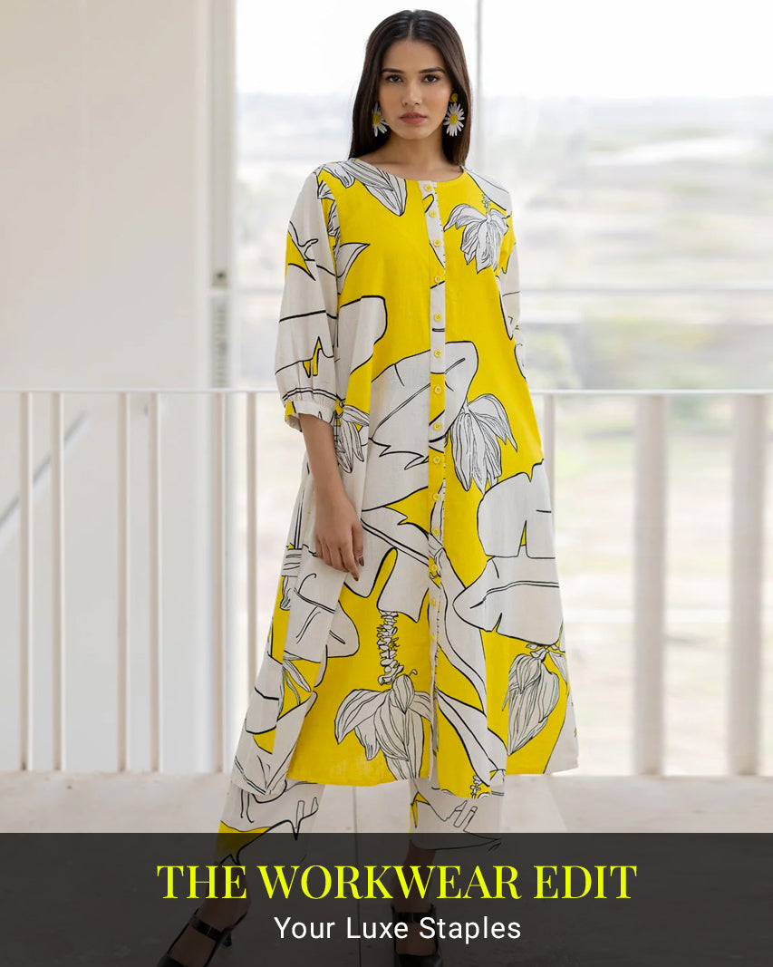 Flaunt your sassy style with our top-sellers like every day kurta sets, linen co-ord sets, easy breezy cotton dresses, AM to PM chic office wear tops and pants, hemp and organic cotton skirts and tops, upcycled short and long jackets, linen sarees and digitally printed blouses. Whether you are a seeker of unconventional modern styles or a sucker for timeless old-world charm, you have come to the right place. We are size inclusive platform offering upto 6XL sizing. You can use our Calculate Size widget to ensure you get your perfect size Online without any hesitation.