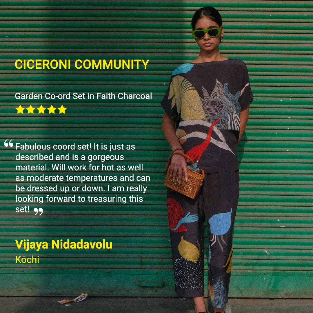 Ciceroni is an online multi-designer platform spotlighting 100+ emerging designers of India in affordable luxury segment. Established in 2016, we bring you eclectic and edgy styles suited for everyday life and occasion wear both for women, men and kids. In a world that is cluttered with choices, Ciceroni brings you a meticulously curated list of designers that are design-led and handcrafted with weaves and crafts of India. Every designer at Ciceroni pays attention to textiles and brings forth contemporary styles that are hand-embroidered, hand-painted and or upcycled. We believe that fashion and style are an expression of one’s personal belief system in these modern times.