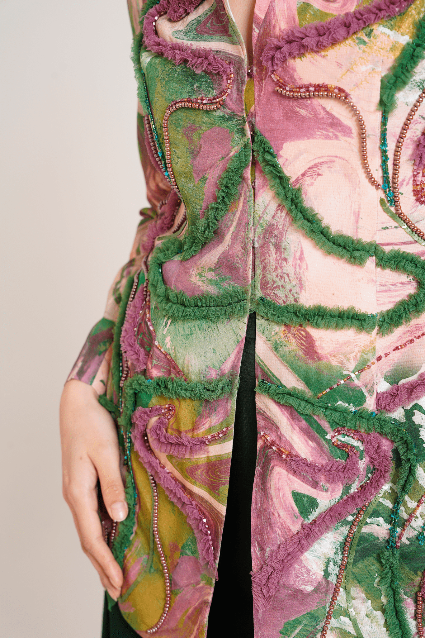 The Ira Blazer Set offers a striking blend of sharp tailoring and intricate embellishment, featuring a structured jacket with a front hook fastening that creates a refined and polished silhouette. Paired with a deep green asymmetric drape skirt, the set balances clean, architectural lines with rich textural details for a modern, directional look. Perfect for those seeking to make a sophisticated statement, this ensemble seamlessly merges elegance with contemporary edge, ideal for formal events and stylish occasions.