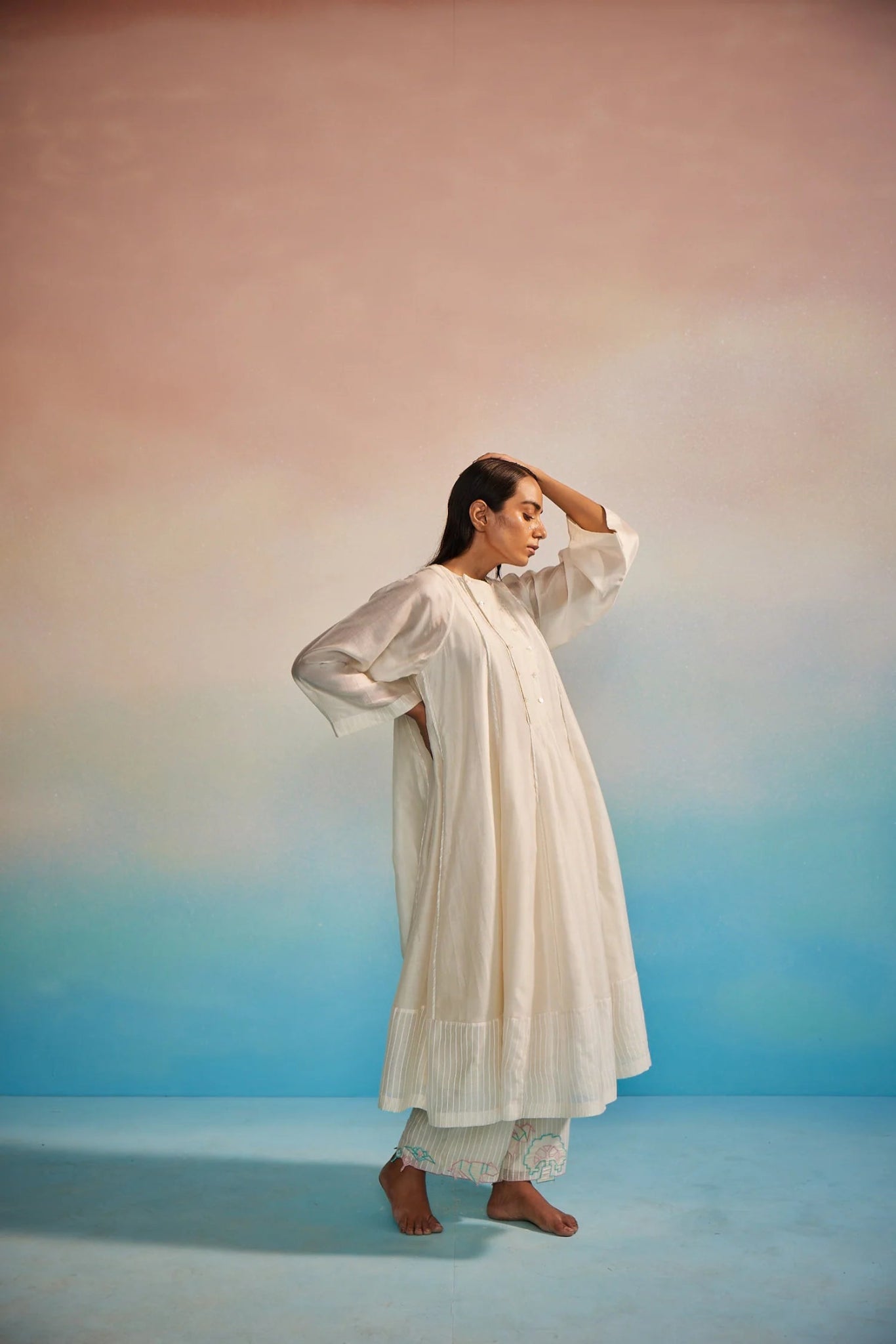 A harmonious blend of texture and detail, the Midori Panelled Kurta Set pairs the Midori paneled kurta which has delicate button and seam accents and Shiori appliqué Pants. Light, breathable, and refined, the set flows effortlessly — a timeless ensemble for everyday elegance.