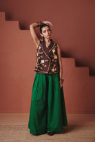 Paan Co-Linen Multi-Pleated Pants Experience refined elegance with these meticulously crafted co-linen pants, designed with a commanding high waist and architectural pleating that creates a graceful, voluminous silhouette. The structured pleats deliver both visual interest and fluid movement, while the generous cut evokes a skirt-like drape that transitions seamlessly from special occasions to everyday wear.
