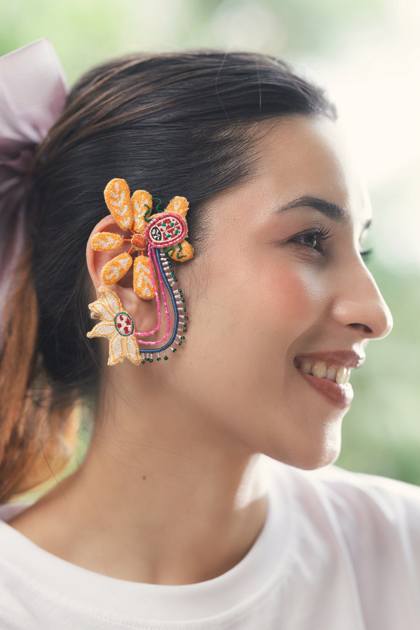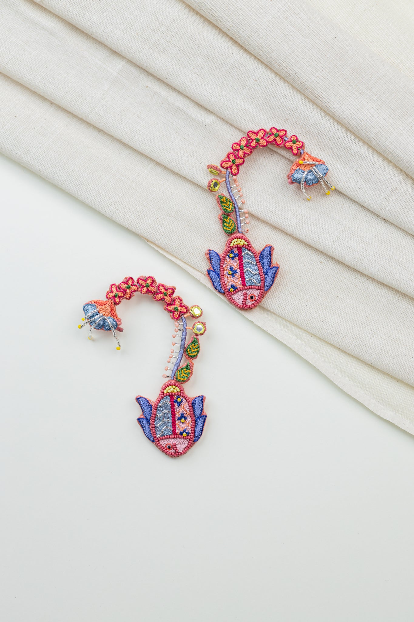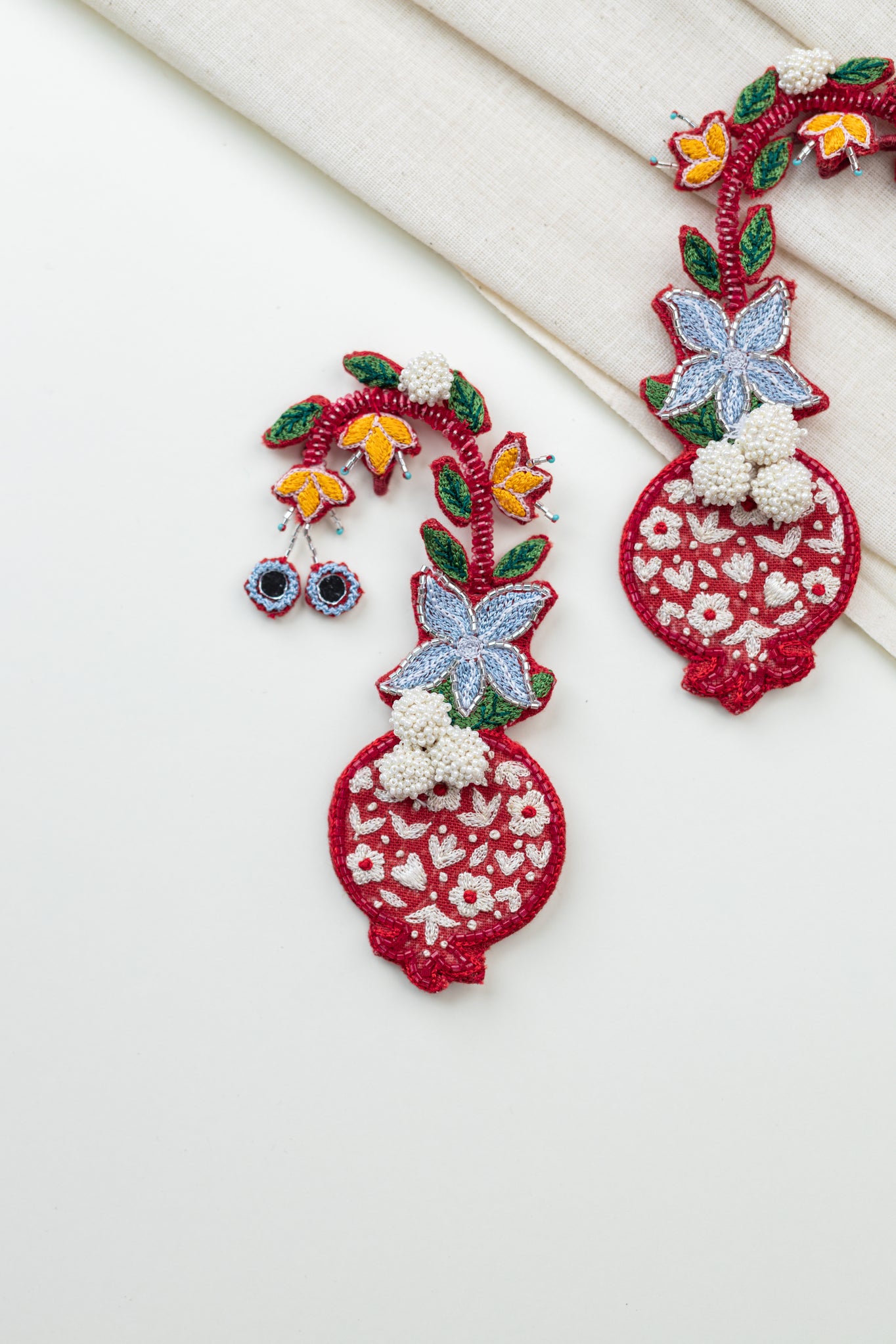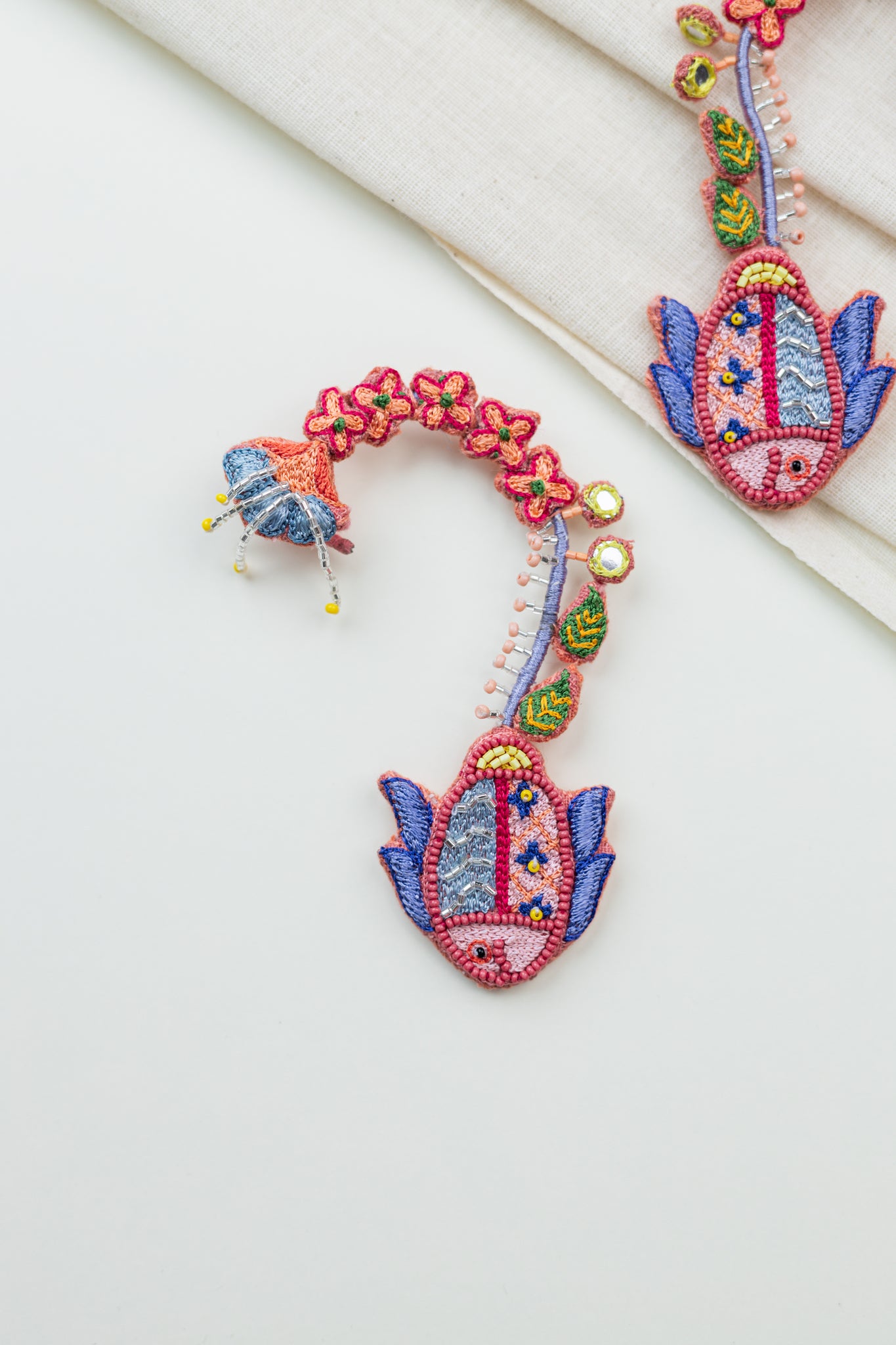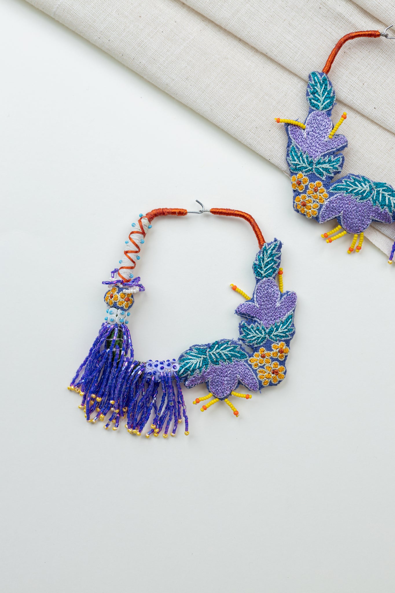 Materials: Cotton fabric, silk threads, beads, woolen thread, oxidised metal