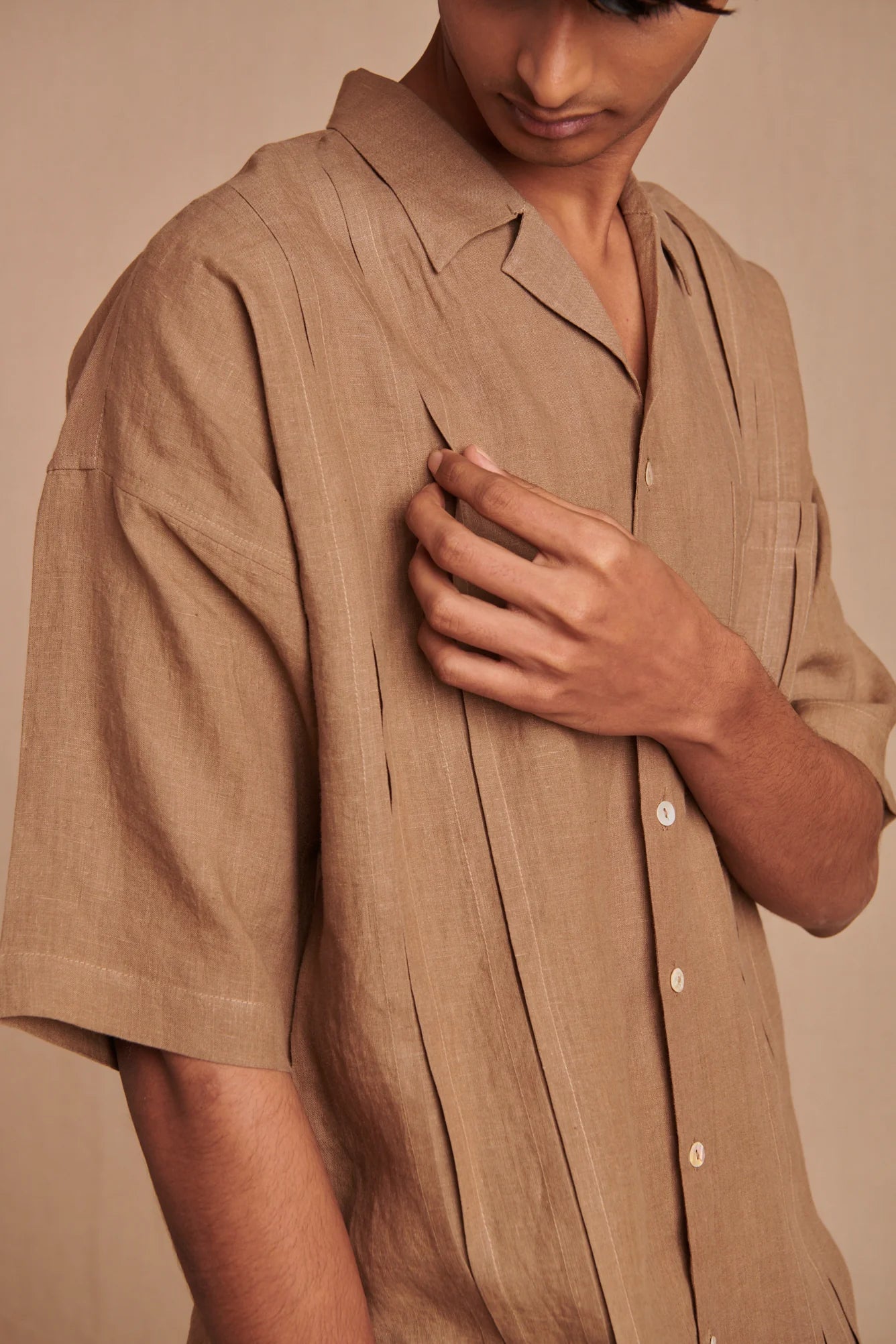 Mousse Linen Men's Pleated Camp Collar Shirt