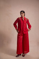 Solara Co-ord Set A timeless pairing that balances sophistication with ease. The fluid handwoven mulberry silk shirt drapes with effortless elegance, while the relaxed-fit handwoven linen-silk trousers offer comfort in a tailored silhouette. Finished with delicate hand-embroidered details, this ensemble reflects artisanal craftsmanship reimagined for modern dressing.