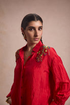 - This shirt has V-collar neck, front button opening with full sleeves and embroidery.