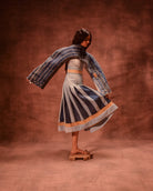 Anam Husain’s collection reimagines Rajasthan’s Kathputlis to explore patriarchy through caged silhouettes, puppet-like geometry, and grainy, eroded textures. Crafted from 1000 kg of repurposed denim and discarded furnishings, it becomes a quiet study of decay, memory, and reinvention.