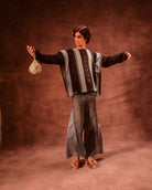Anam Husain’s collection reimagines Rajasthan’s Kathputlis to explore patriarchy through caged silhouettes, puppet-like geometry, and grainy, eroded textures. Crafted from 1000 kg of repurposed denim and discarded furnishings, it becomes a quiet study of decay, memory, and reinvention.