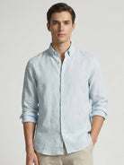 Ice Blue 100% Pure Linen Button Down Shirt