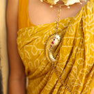 Elevate your ensemble with this exquisite body chain, featuring intricate paisley motifs embellished with shimmering cubic zirconia (CZ) stones. Meticulously crafted, the design gracefully drapes from the neckline, contours the torso, and secures comfortably around the waist with an adjustable chain. This versatile accessory seamlessly blends traditional artistry with contemporary elegance, making it an ideal choice for festive occasions, weddings, or adding a touch of sophistication to any attire.