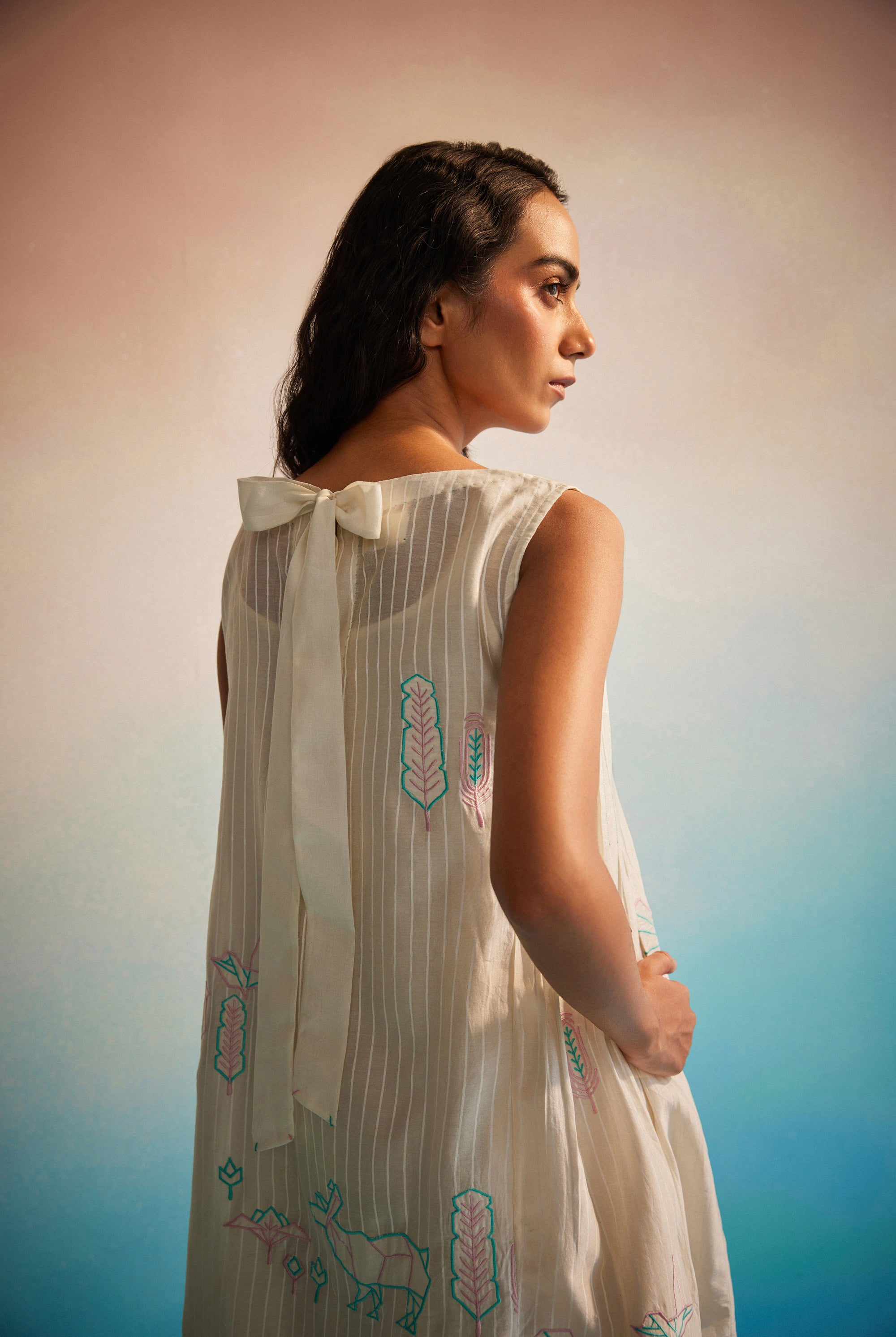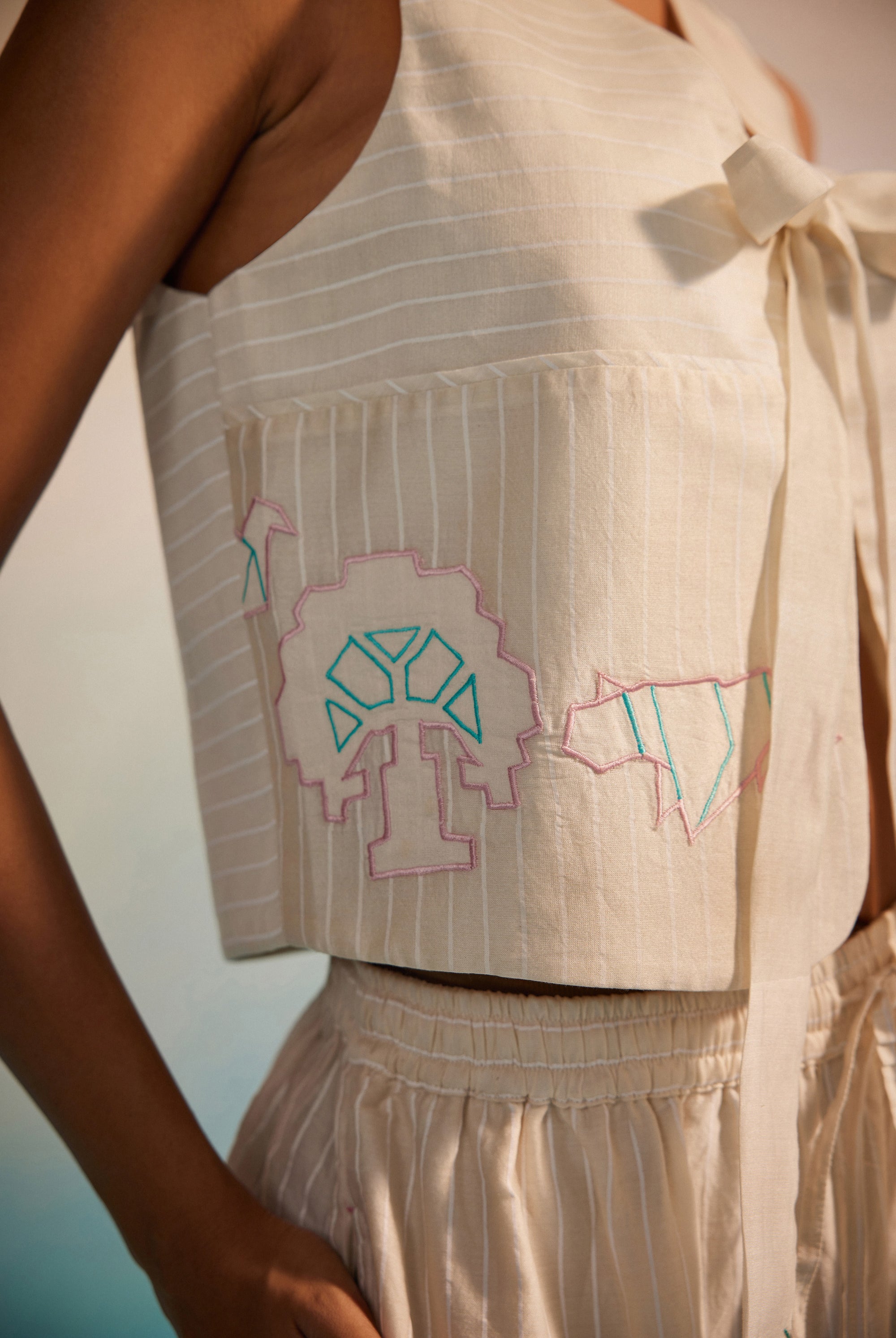 - Screen printed by hand and Hand embroidery detailingon yoke