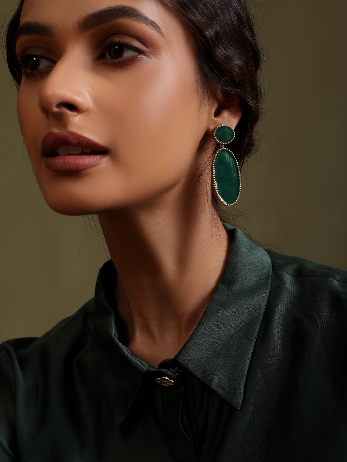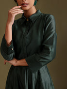 A minimal yet festive set — a classic shirt elevated with a statement button and subtle back embroidery, paired with a flared skirt adorned with delicate embroidery along the hem.