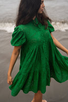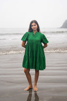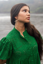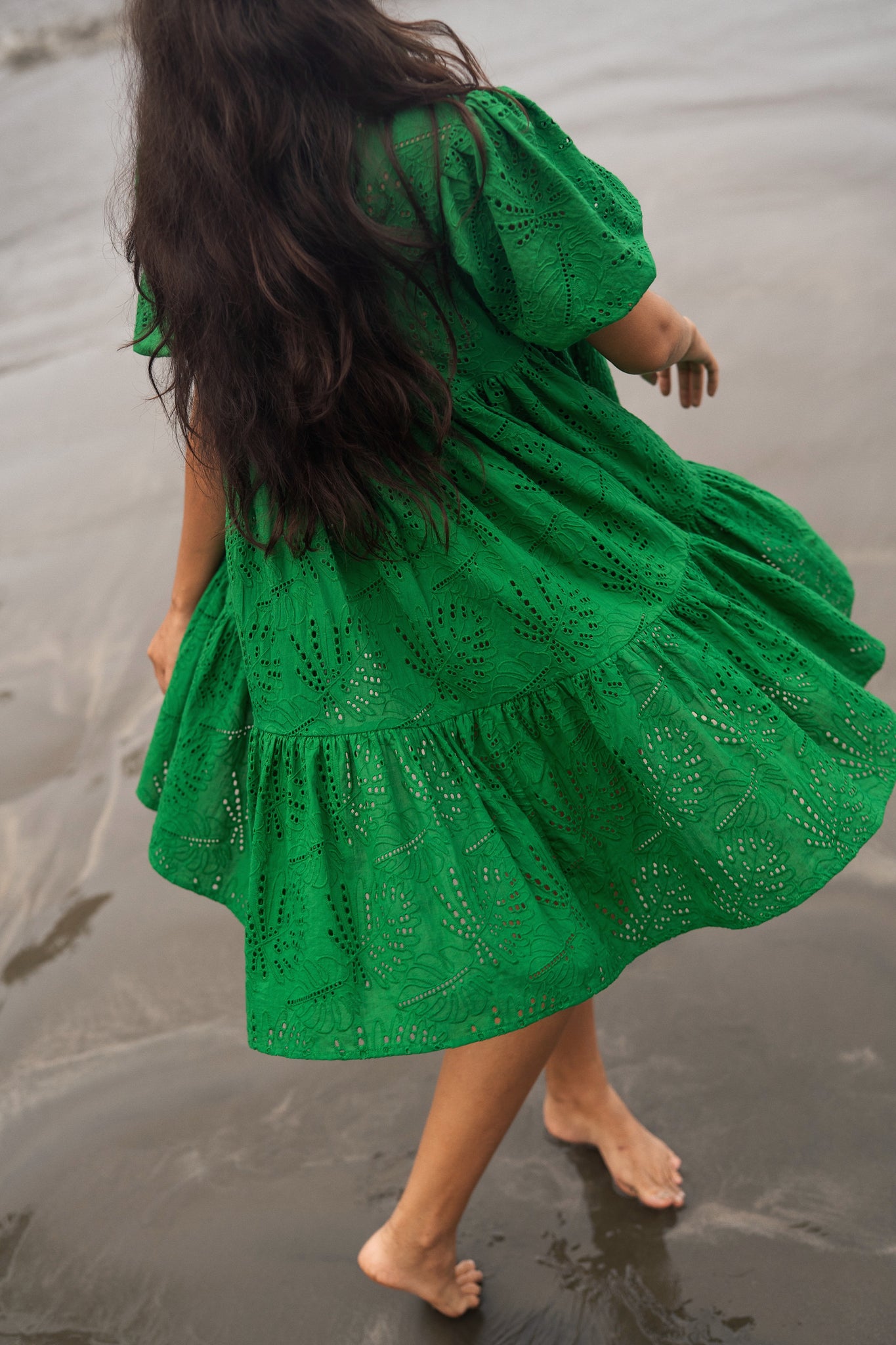 The Layla dress is crafted from our luxurious hakoba embroidered fabric, tinted with our exclusive azo-free color. Featuring three tiers and balloon sleeves, this dress exudes sophistication and elegance.