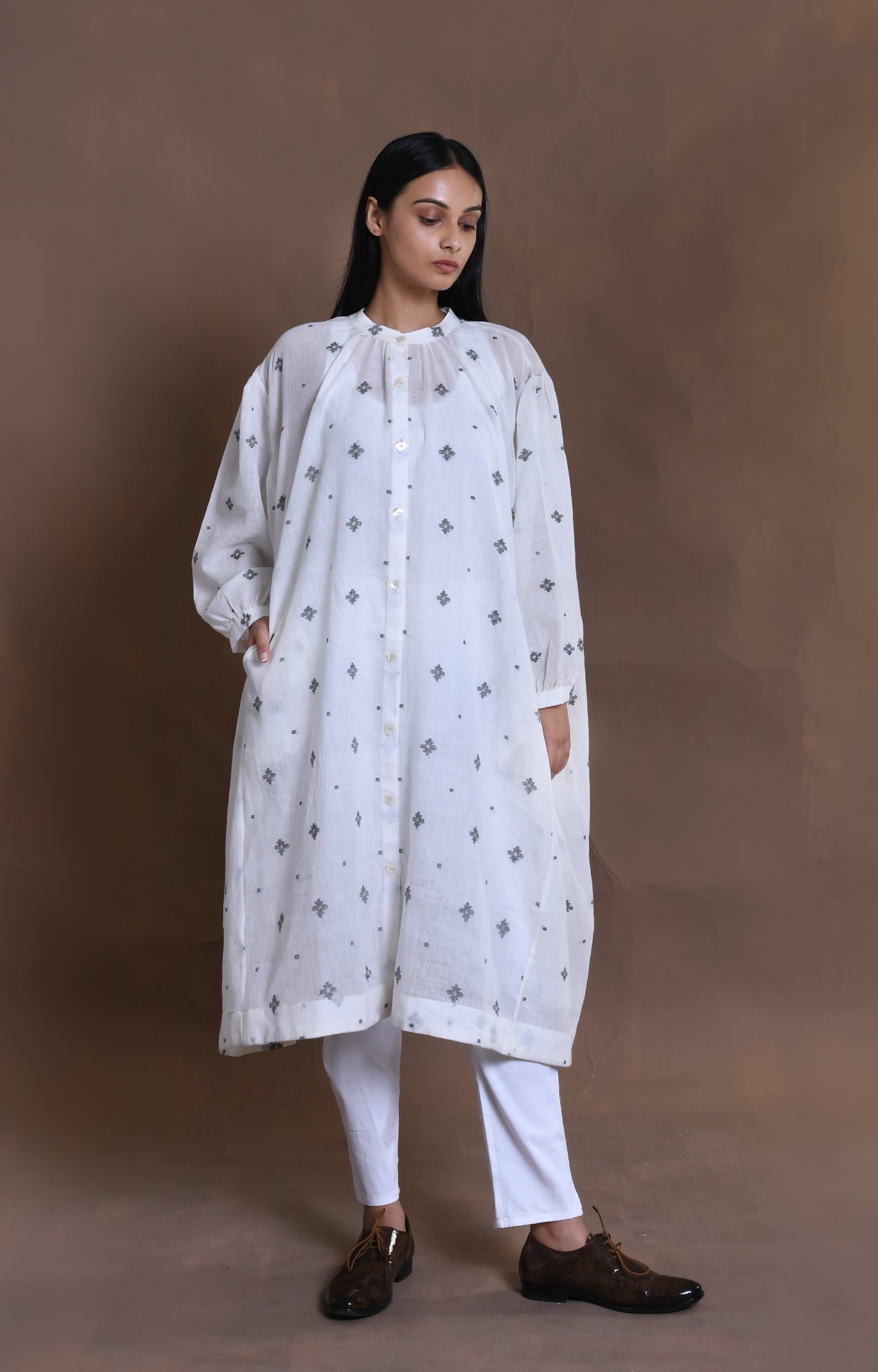 Our dresses are thoughtfully crafted in luxurious and breathable fabrics such as Jamdani Cotton, Mulberry Silk, Handwoven Linen, Organic Cotton, Mashru Silk, Chanderi Silk-Cotton, and even sustainable blends like Hemp-Cotton. Each dress tells a story with intricate details, block prints, digital prints, kantha embroidery, and contemporary cuts.