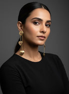 The Hridaya Earrings feature a sleek, elongated stud design crafted from lightweight brass for effortless wear. Accented with sparkling CZ pink stones, these earrings add a subtle yet sophisticated pop of color, perfect for elevating any ensemble with understated elegance.