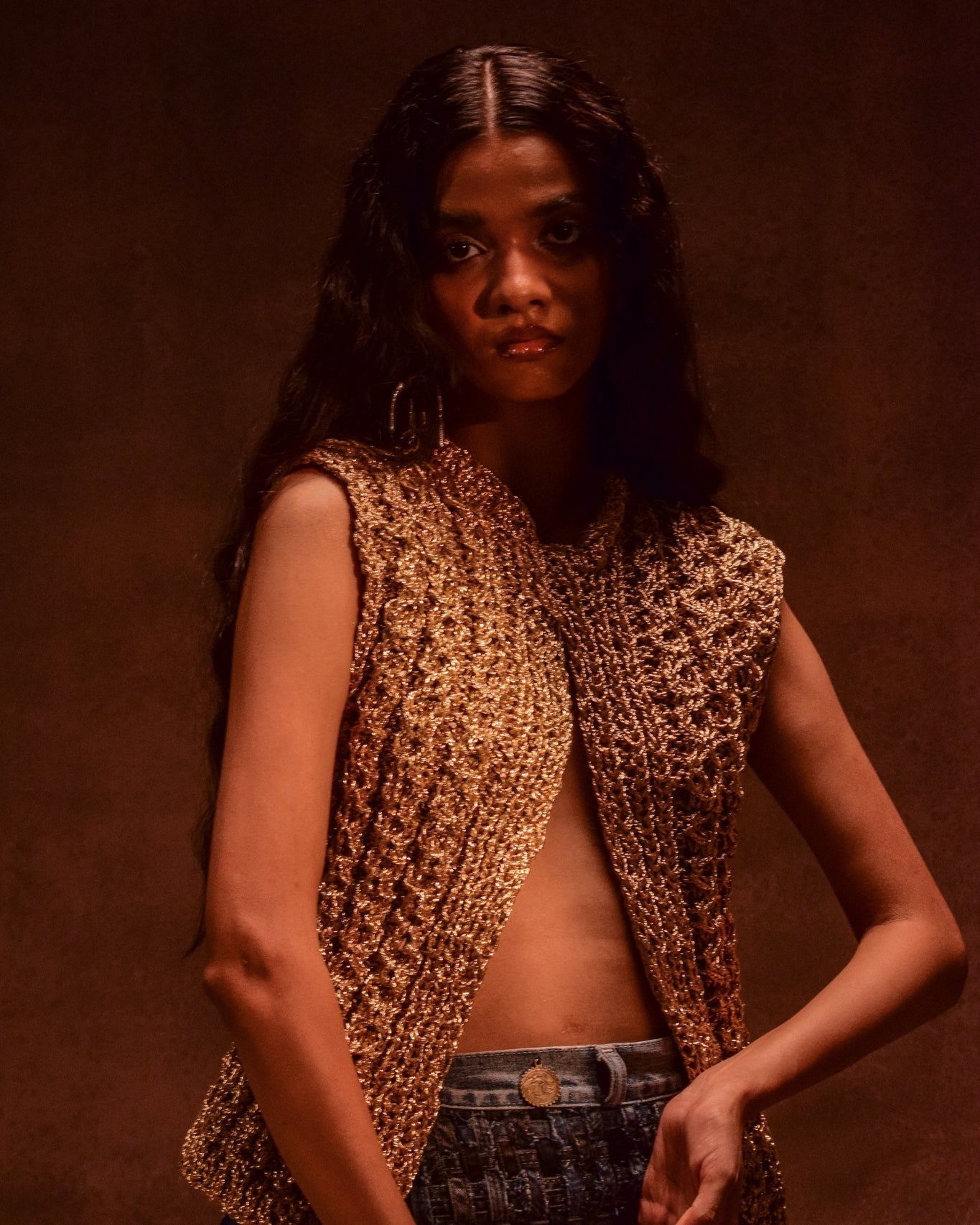 Handcrafted by skilled women crochet artisans, the AU Vest is made using metallic zari yarn that lends it a soft shimmer and refined elegance. Its open-stitch crochet offers a lightweight, breathable structure with a radiant glow. Perfect for layering, this versatile piece adds a touch of shine to elevate your everyday look.