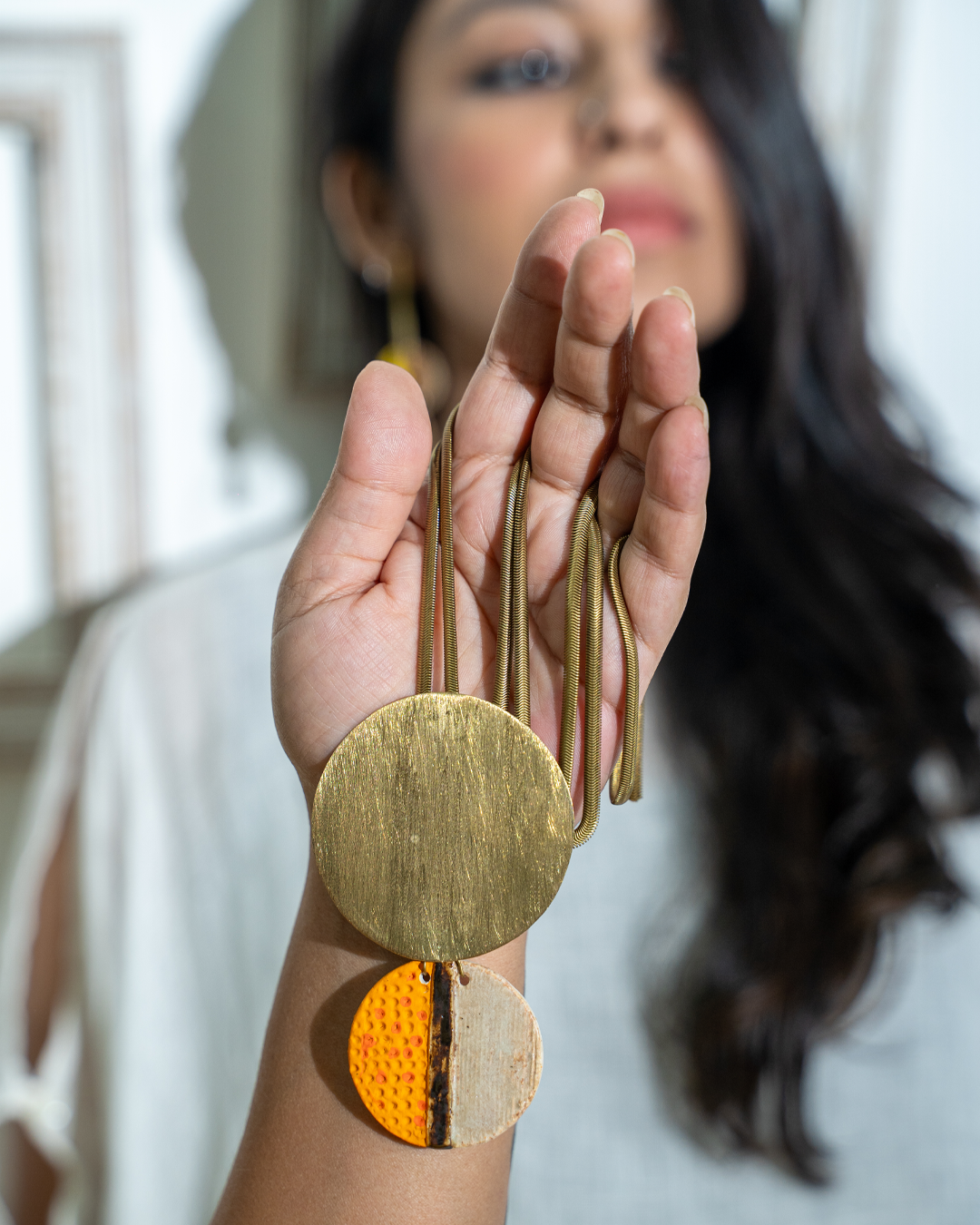 Elevate your jewelry collection with our Boundless Ecom Neckpiece - 6. Made from Handcrafted Ceramic Pieces in fusion with brass, this neckpiece exude sophistication.
