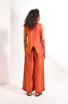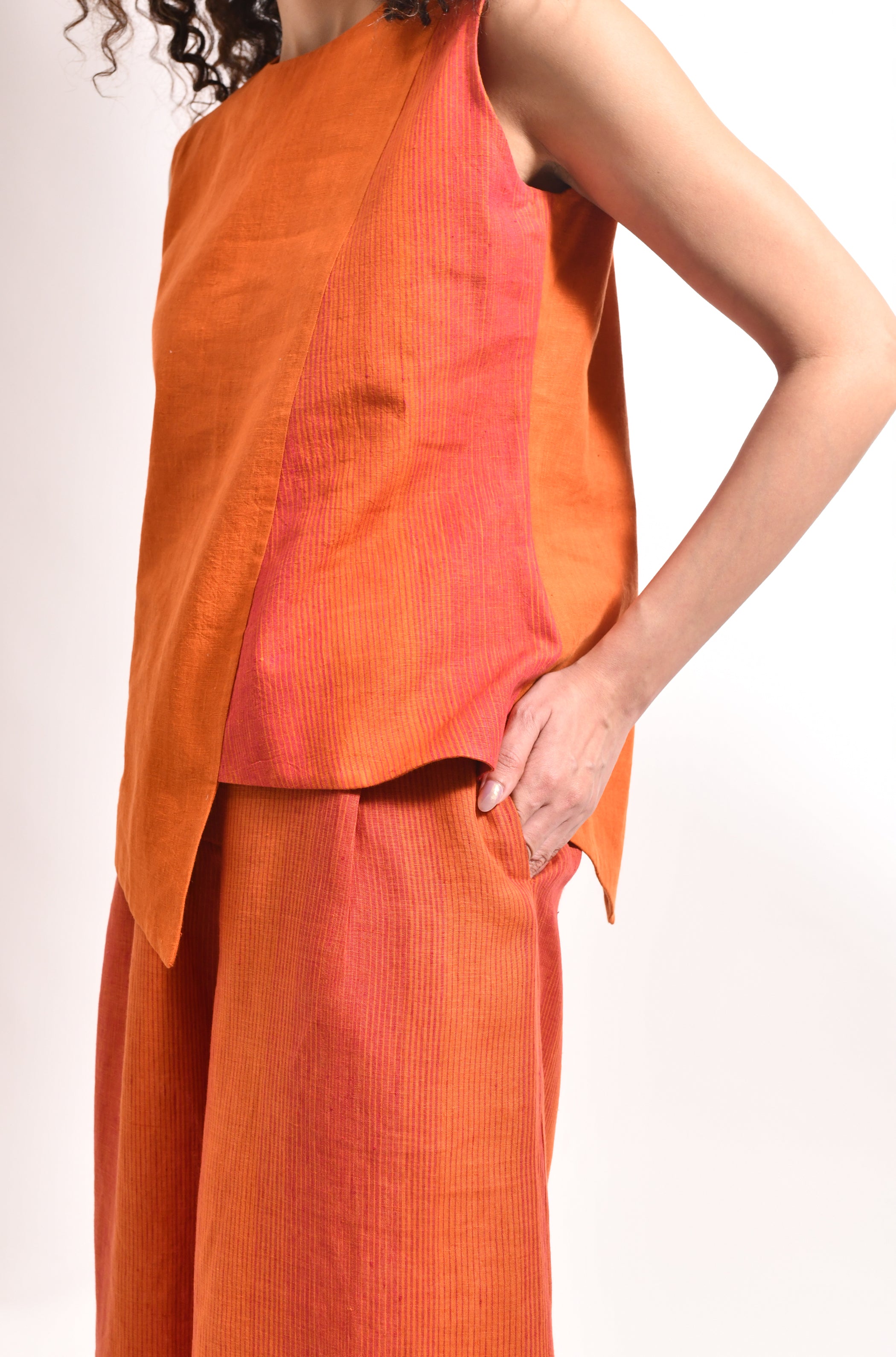 Elevate your style with The Gloria Set- Amber. This bold, contemporary co-ord set features a striped overlay on a solid base, creating a striking visual appeal. The V-cut detailing on the front and back of the overlap top adds a touch of sophistication. Complete with striped flared trousers, this comfortable and effortless set is the perfect addition to your wardrobe.