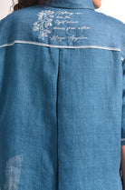 - This loose crop shirt has Bougainvillea embroidery with maya Angelou quote at the back.