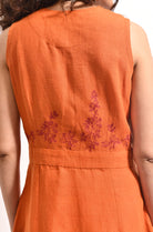 - This sleeveless wrap dress has Bougainvillea embroidery along the body and selvedge detailing on edges