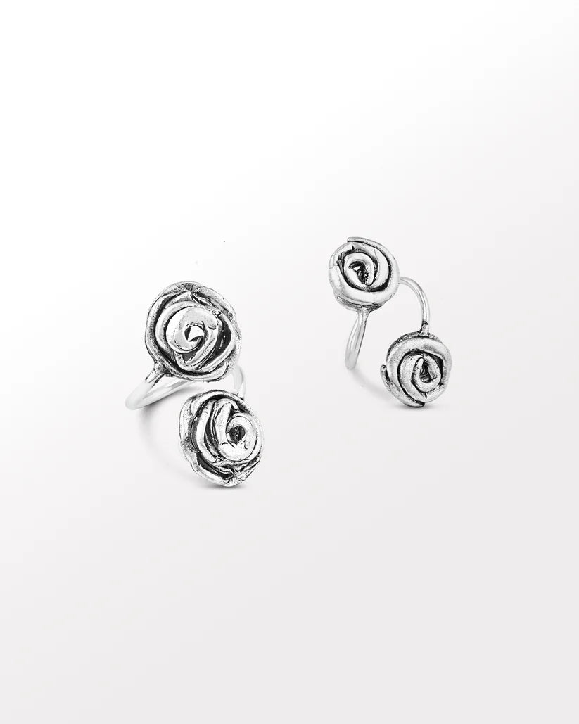 The Turuh Rings translate a timeless motif into wearable philosophy, two spiralling forms that mirror and embrace, capturing the duality of inward and outward transformation. This twin-knot design embodies both tension and harmony, rendered in sculpted detail that commands presence without demanding attention. The adjustable fit ensures comfort across sizes while preserving the ring's architectural integrity. Select Classic for bold definition or Midi for understated elegance. A piece that speaks to those who understand that true beauty lives in paradox.