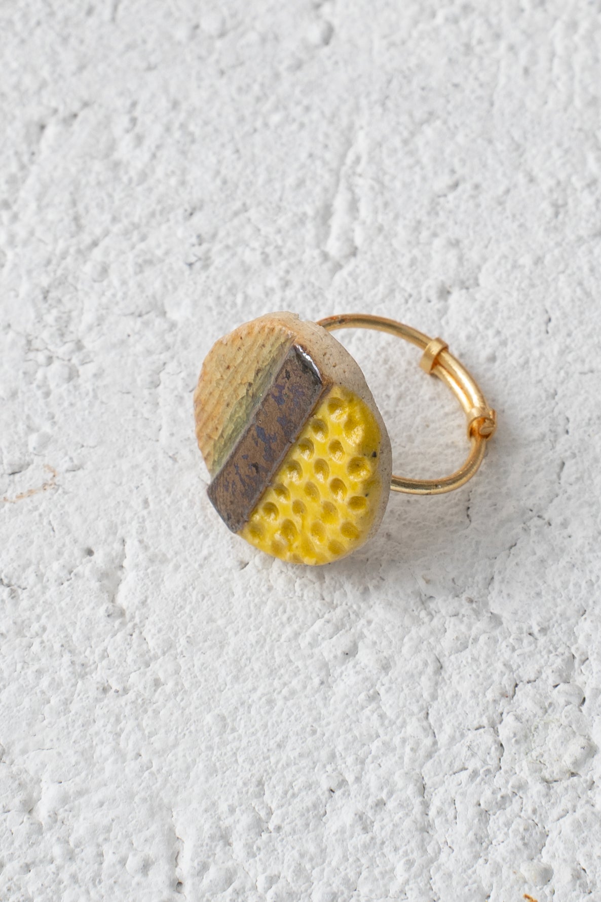 Elevate your jewelry collection with our Boundless Ecom Ring. Made from Handcrafted Ceramic Pieces in fusion with brass, these earrings exude sophistication.