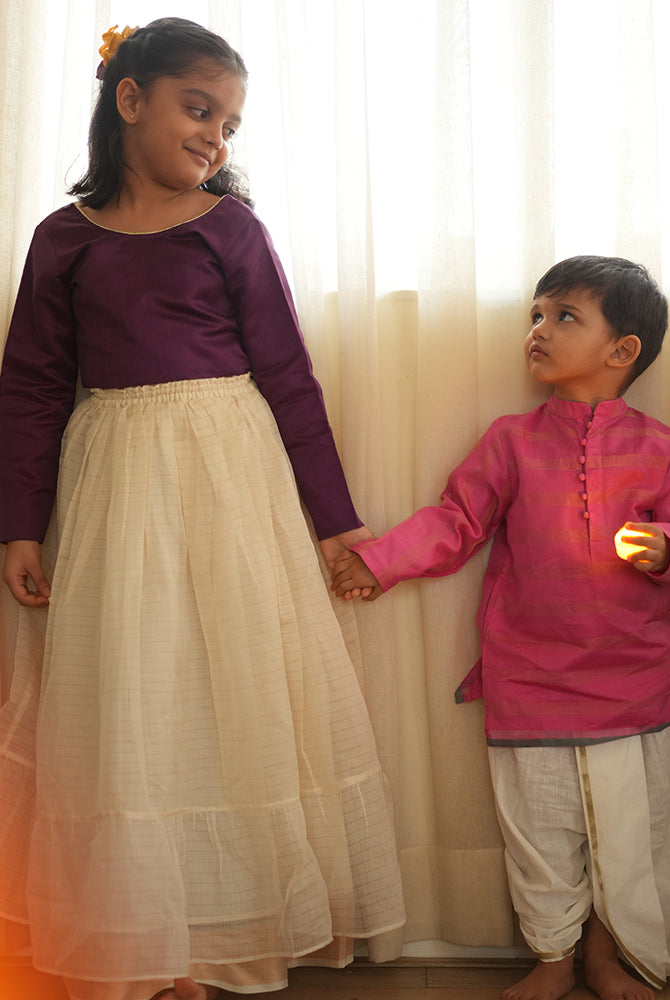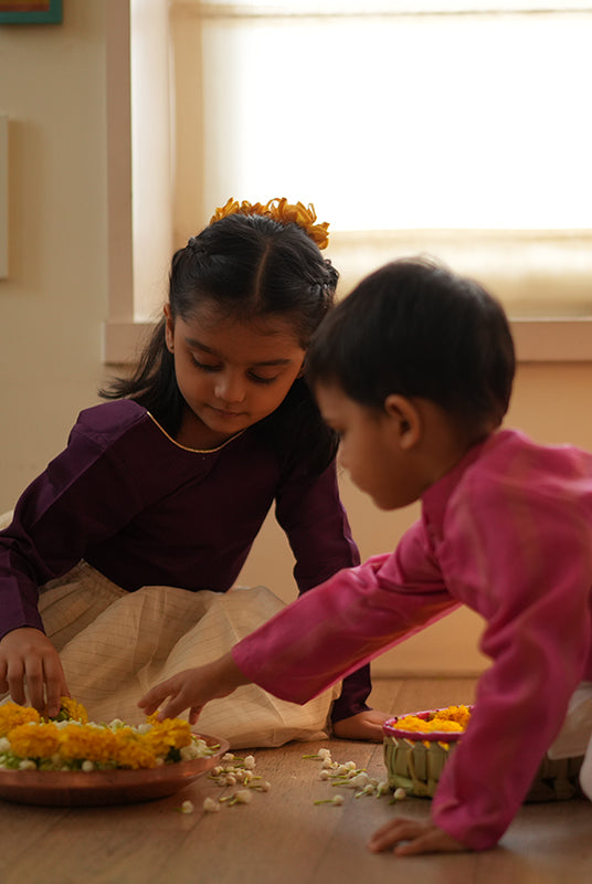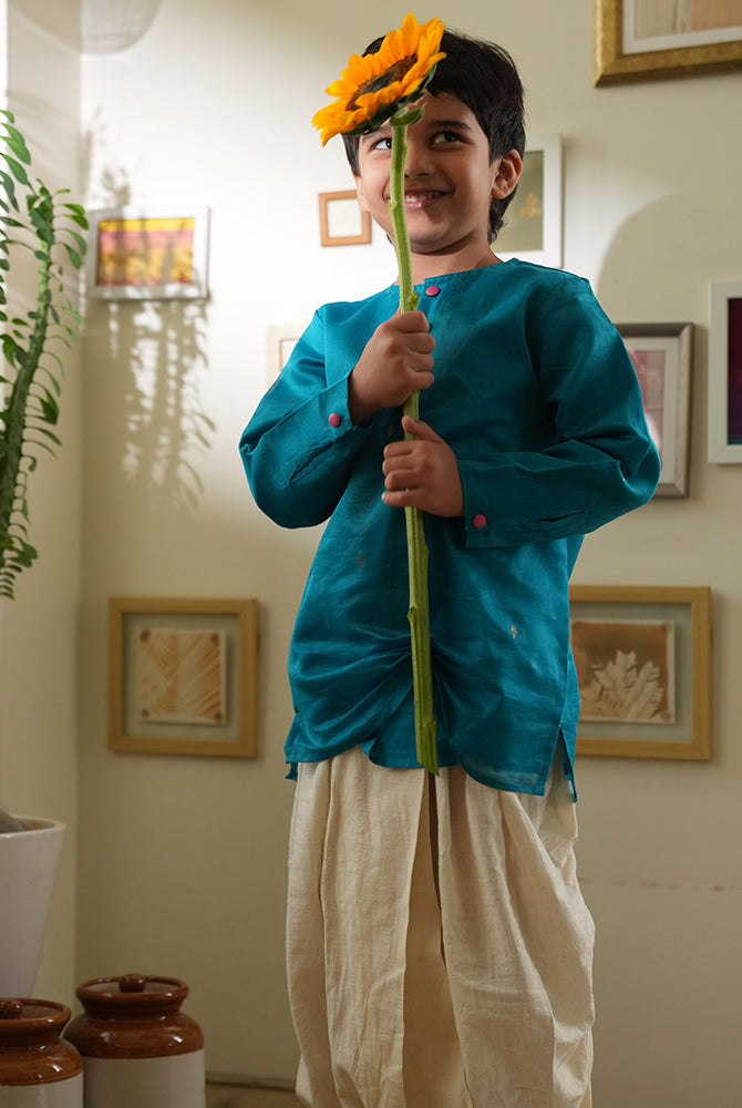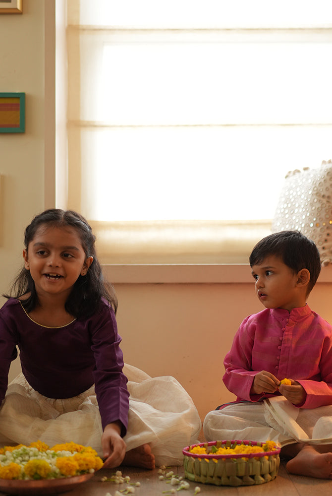 Experience festivals in absolute comfort with this elegant kurta designed for every moment of your little one’s day from lively celebrations to restful sleep. Crafted from soft, breathable cotton, it features a unique Love the World Today hand block print by skilled Rajasthan artisans. This artisan-made kurta includes convenient pockets for stashing little treasures, combining tradition with practicality in a refined style.