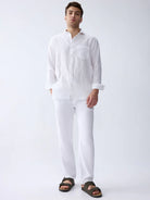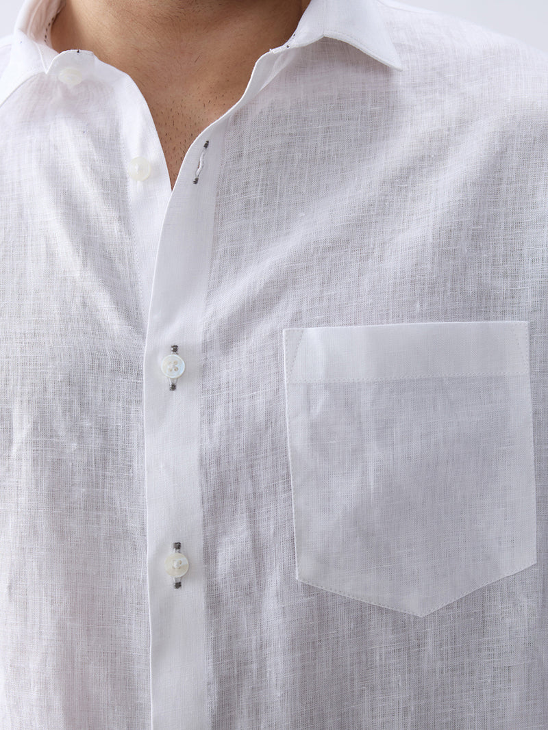Cloudline White 100% Pure Linen Shirt (With Contrast Detailing)
