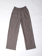- Pants have fixed waistband with front hook-zip closure, pleat detailing in front and side pockets