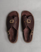 A refined addition to our Envelope Sandals series, handcrafted with a natural cork base and luxurious suede insole for exceptional comfort. The rich tan leather upper features gold-tone buckles and refined trim stitching, creating a sophisticated, timeless look.