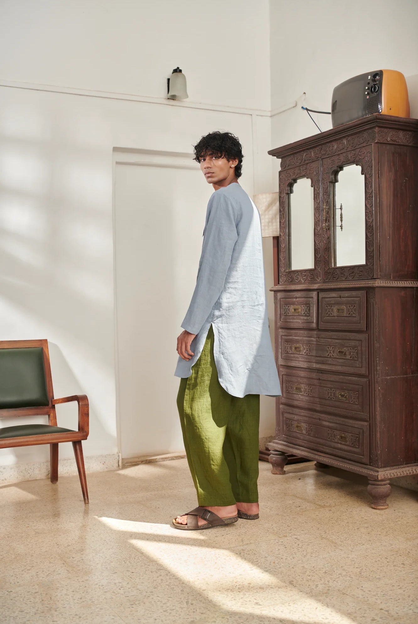 Our men’s kurtas allow you to break away from the usual shirt-and-pants look. Pair them with draped dhotis, jeans, relaxed-fit pants, or even formal trousers to create a versatile look. For a stylish touch, add a brooch, multi-use neckpiece, or bracelets. These kurtas are not only ideal for festive events but also serve as fashionable lounge wear during vacations or stylish workwear for men with a creative sartorial sense.