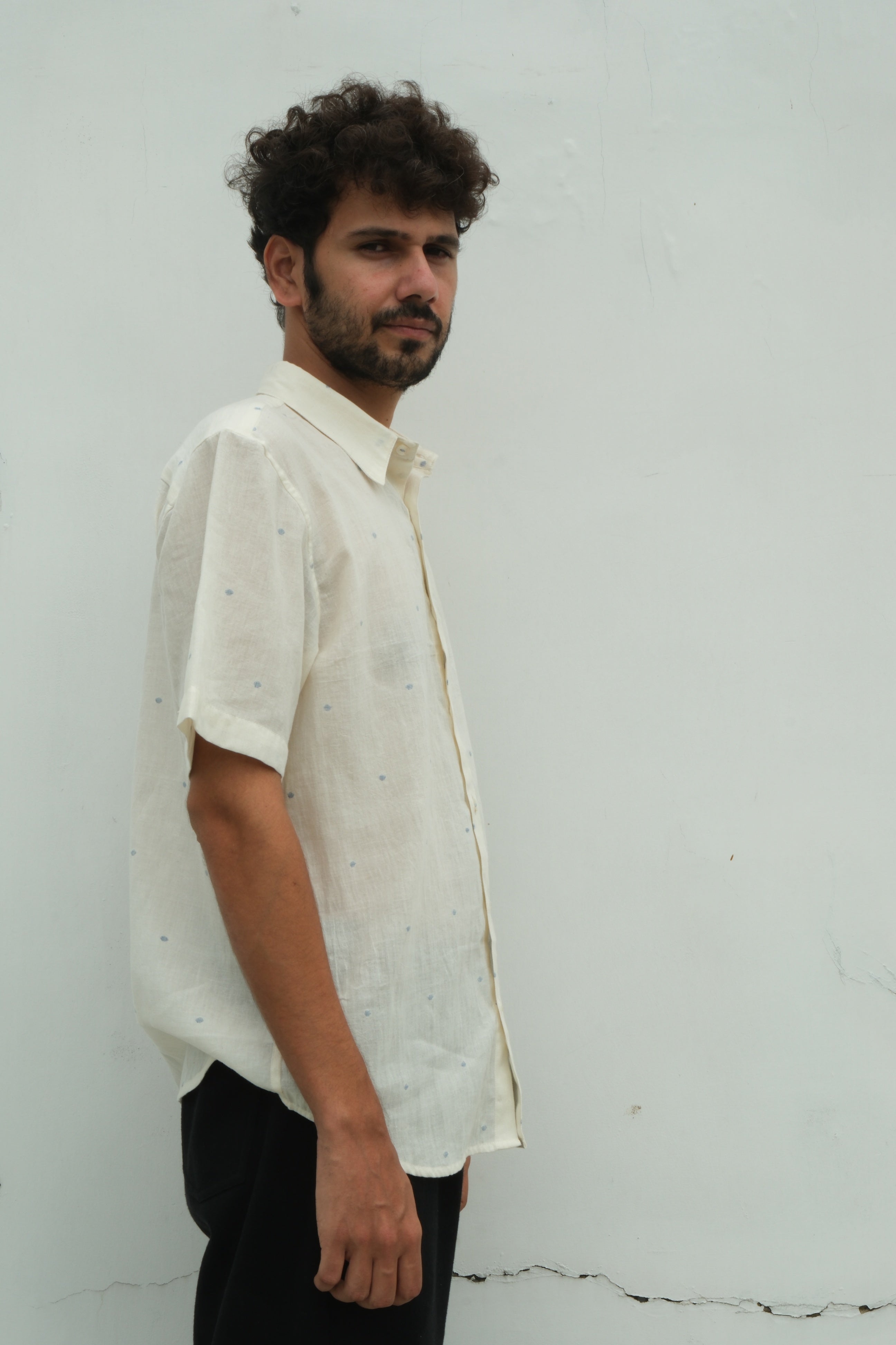 Introducing the Dew Shirt, a refined piece crafted from mid-weight Jamdani cotton that balances comfort with understated elegance. Woven using azo-free dyes, this shirt reflects a commitment to responsible craftsmanship. The half-sleeve silhouette features a spread collar, a functional box pleat at the back for ease of movement, and contrast buttoning threads that add a subtle touch of sophistication. Perfect for those who appreciate quality fabrics and thoughtful design details.