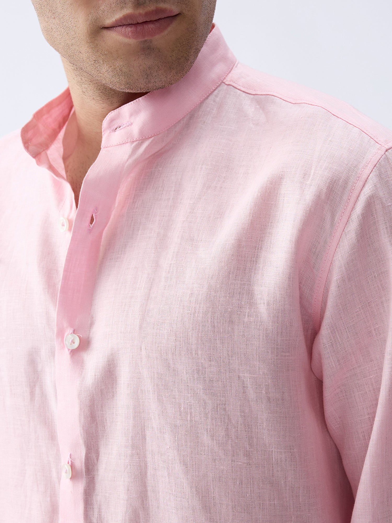 Blush Pink Mandarin 100% Pure Linen Shirt