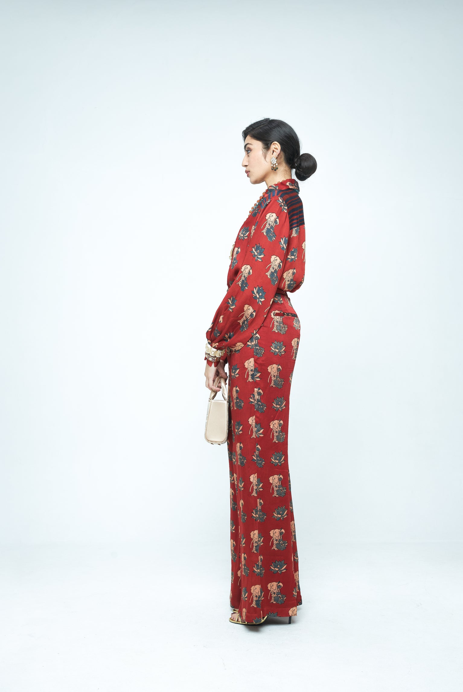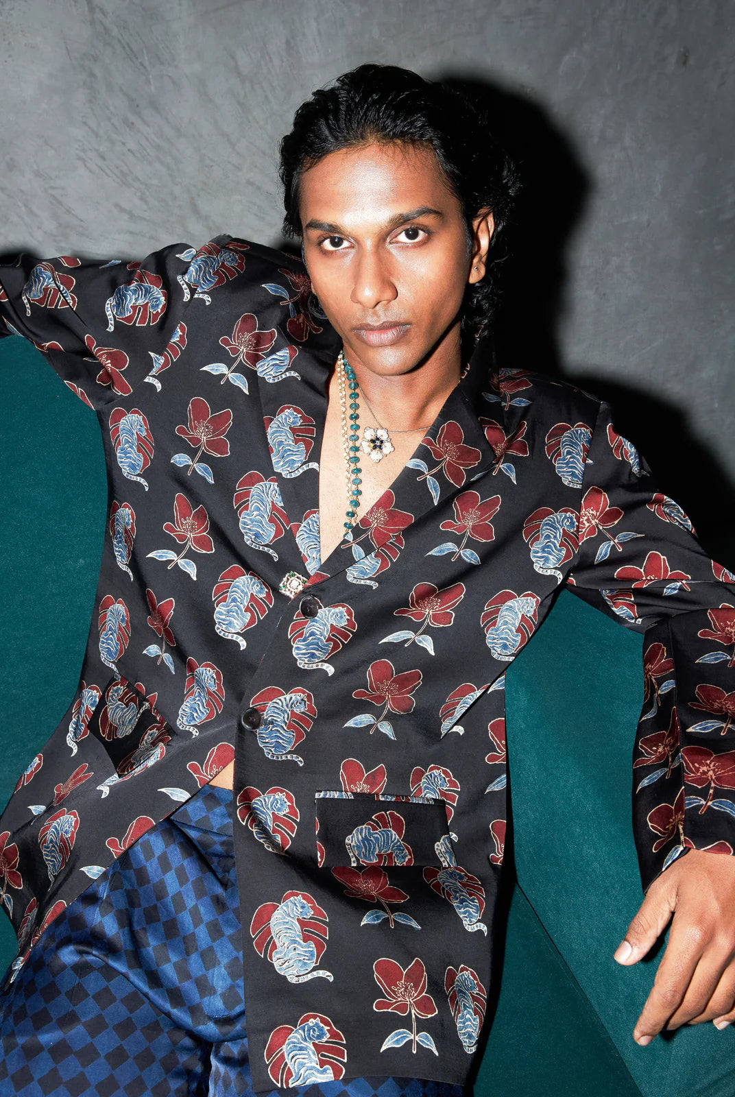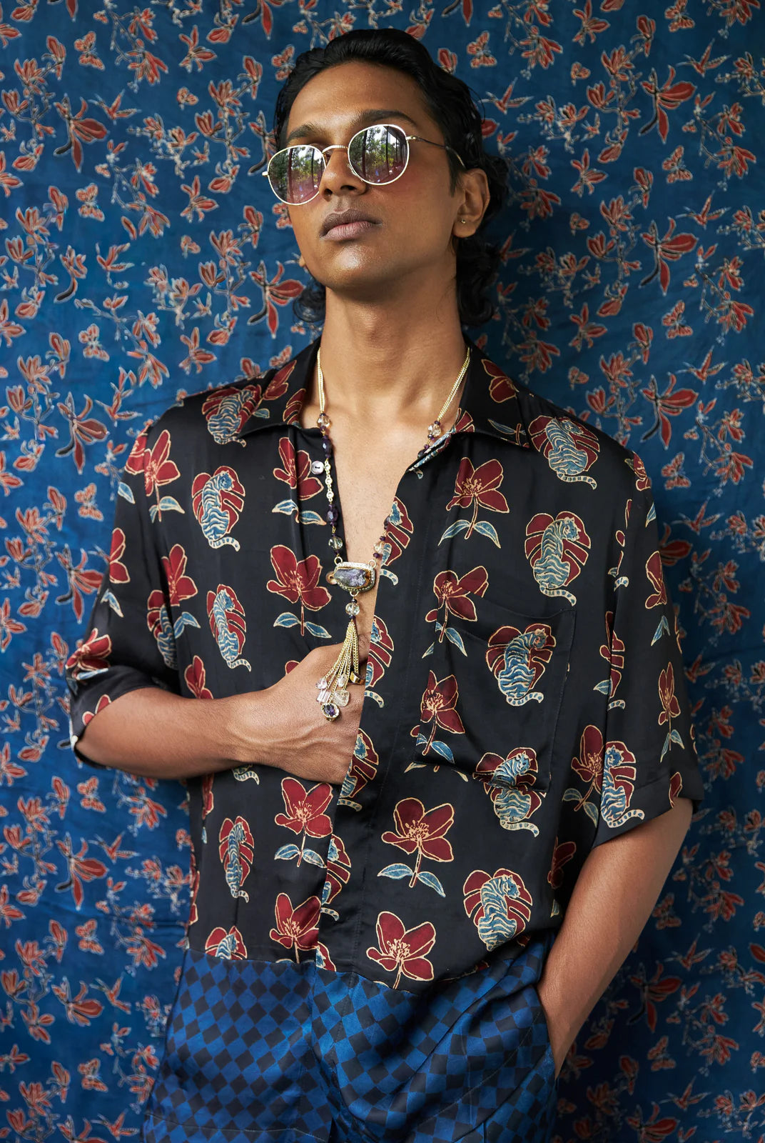 This halter top is a sleek expression of bold artistry and contemporary ease. Crafted from soft modal fabric, it features the striking Blooming Beast print, bringing a vibrant, modern edge to a clean, refined silhouette. Designed with a halter neckline, it frames the shoulders beautifully while maintaining an effortless sense of movement. Side slits enhance comfort and fluidity, while a discreet side zipper ensures a seamless fit.