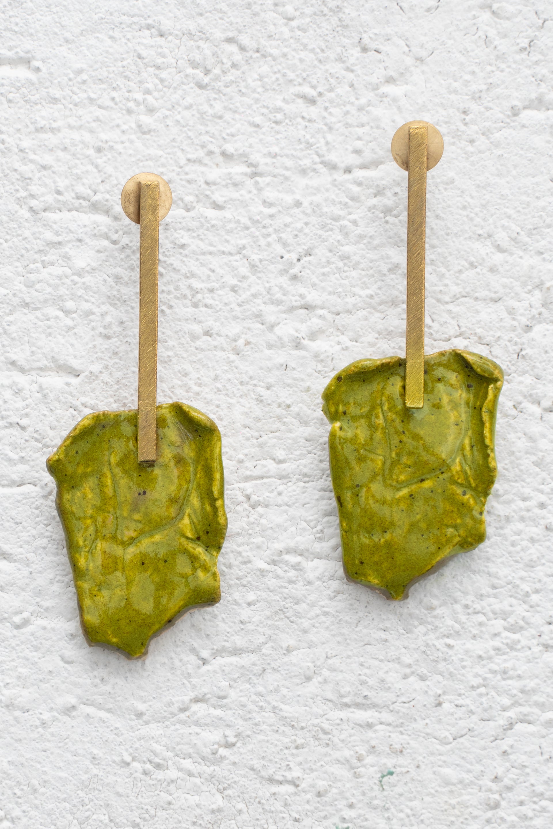 Elevate your jewelry collection with our Boundless Green Earrings. Made from Handcrafted Ceramic Pieces, these earrings exude sophistication. The unique rectangular shape and brass accents make for a truly exclusive piece.