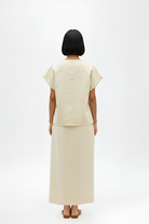 Elevate your wardrobe with this sophisticated ivory-asparagus green skirt set, where timeless elegance meets contemporary design. The ensemble features a graceful cape paired with a straight skirt adorned with a front slit, creating a flattering silhouette. Intricate machine embroidery adorns the pocket, infusing artisanal detail into every wear. Versatile enough for day-to-night transitions, this set seamlessly blends refined aesthetics with distinctive craftsmanship, making it an essential addition for those who appreciate understated luxury and thoughtful design.