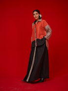 Oversized shirt crafted in soft silk with random patchwork. Designed with varied color placement and finished with Kantha buttons.