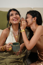 Inspired by the Kashmiri red stag, the Ruhani Bracelet symbolises grace and quiet strength. Handcrafted in brass with 18k gold plating and accented with emeralds, it reflects refined Indian craftsmanship.
