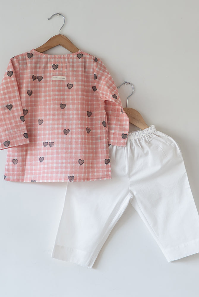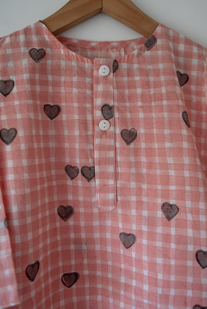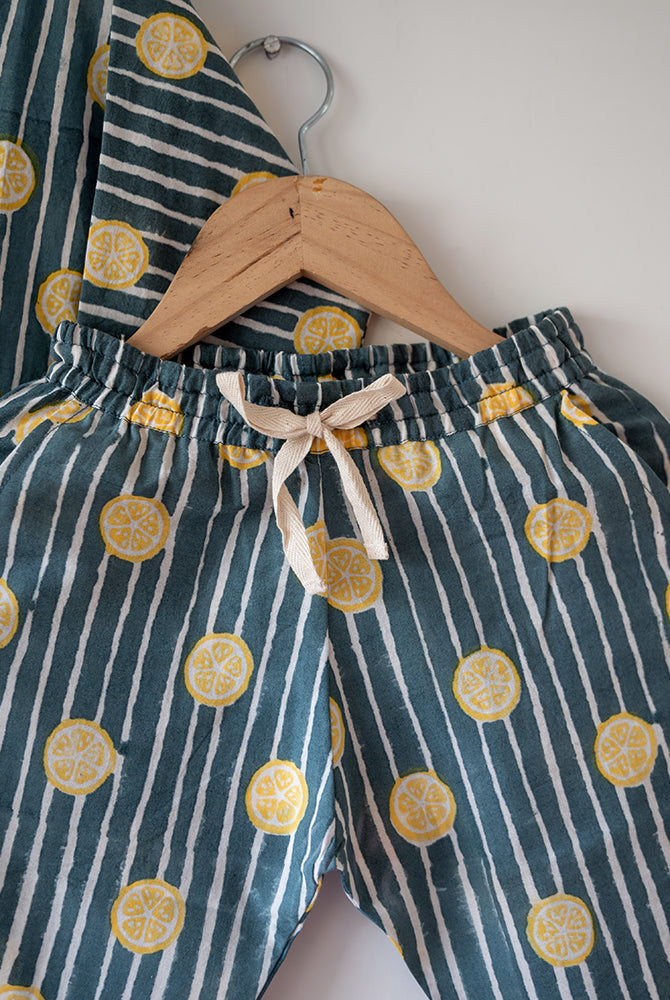 Sleepover Party Kurta and Shorts Co-ord Set - Lemon Drizzle Red Print