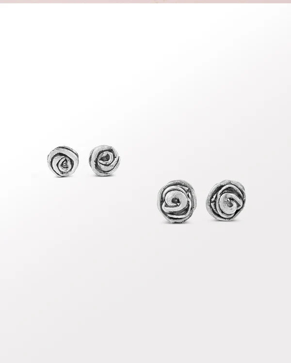 The Turuh Studs distill consciousness into stillness. Named for Turiya, the fourth state of awareness, and Rooh, the soul, these earrings translate inner landscape into wearable form. A spiral knot motif, textured with intuitive geometry, echoes emotion and breath. Available in Classic for grounded presence or Mini for understated grace, they function as daily meditations, anchors of awareness worn close to the skin.