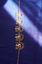 Gul Set draws inspiration from the intricate naksha patterns of traditional Bengal wedding artistry. Hand-detailed stonework features delicate pink stones set within a framework of pure copper and brass, finished in warm golden tones.