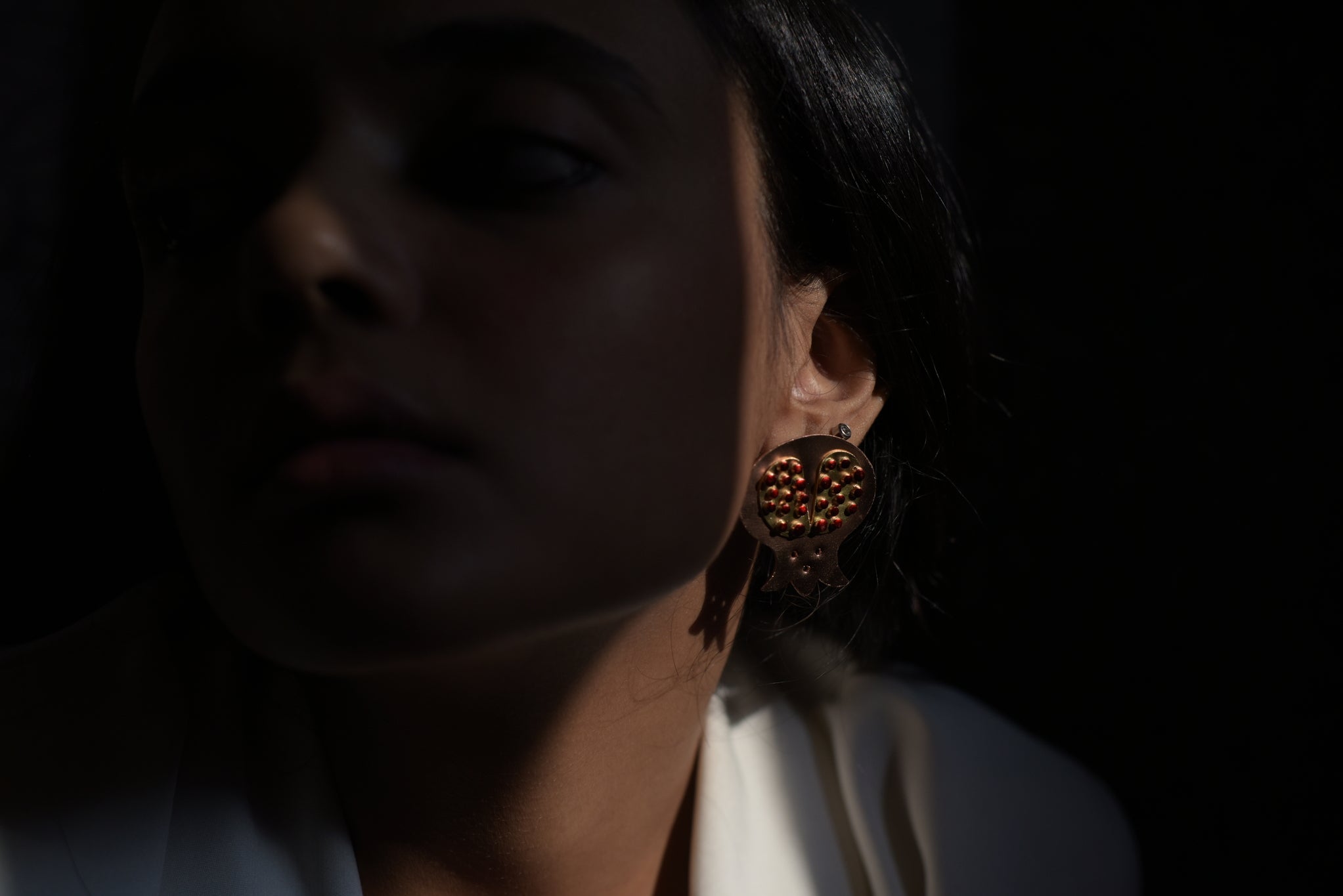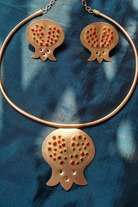 Celebrate the vibrant essence of nature with this striking Pomegranate Set, where contemporary design meets timeless craftsmanship. Handcrafted from warm copper and brass, each piece features a playful pomegranate motif rendered in rich red enamel that catches the light beautifully.