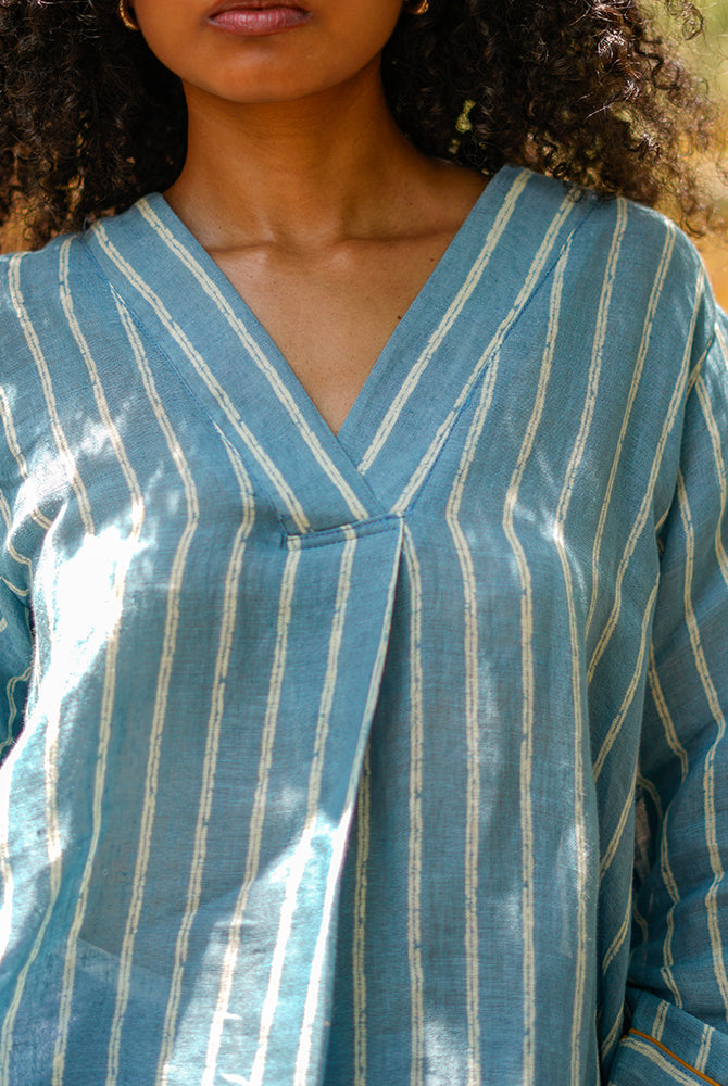 The Saaz Blouse is your go-to piece for easy eleagance and breathable comfort. Crafted from soft handloom cotton-linen, this sleeveless blouse features a clean round neckline and a sleek front zip opening. The back is beautifully detailed with our signature bindi embroidery and delicate handwork, adding a whisper of tradition to this minimalist silhouette. Lightweight and versatile, it transitions effortlessly from casual days to elevated evenings.