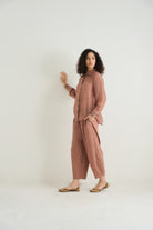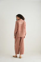 Gingerale Cocktail special, This Ginger coord set is perfect for a feminine feel to celebrate woman. The cotton silk shirt has front sequence detail paired with ankle fit pant.