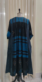 Experience effortless grace with this Loose Dress crafted from 100% handwoven cotton Jamdani. Featuring a rich blend of black and navy blue accented by subtle gold and silver touches, it offers a freesize, relaxed fit for comfort and style. Wear it as a stand-alone dress or pair it with pants for a refined, versatile look. A perfect choice for those who appreciate understated elegance.