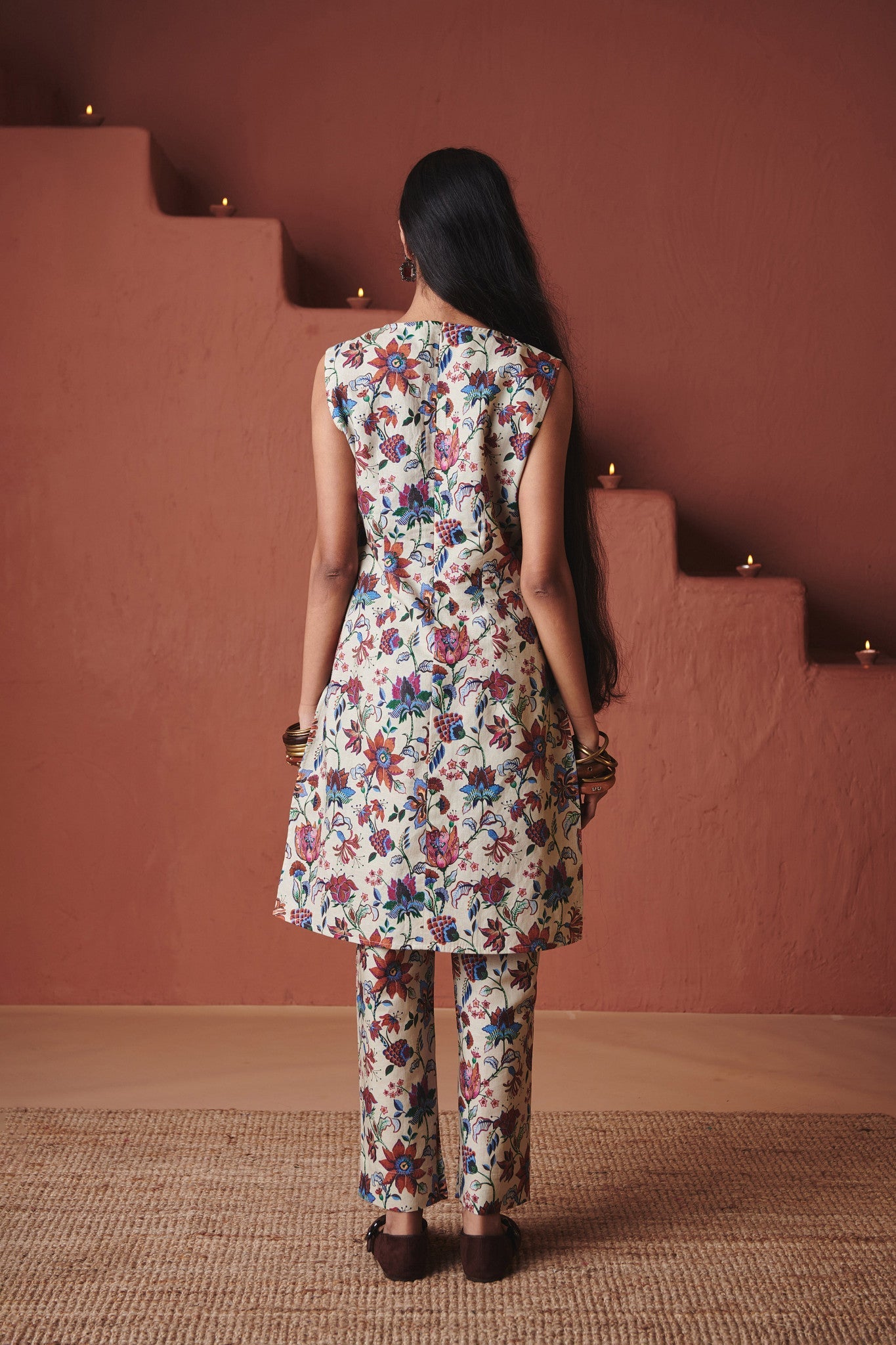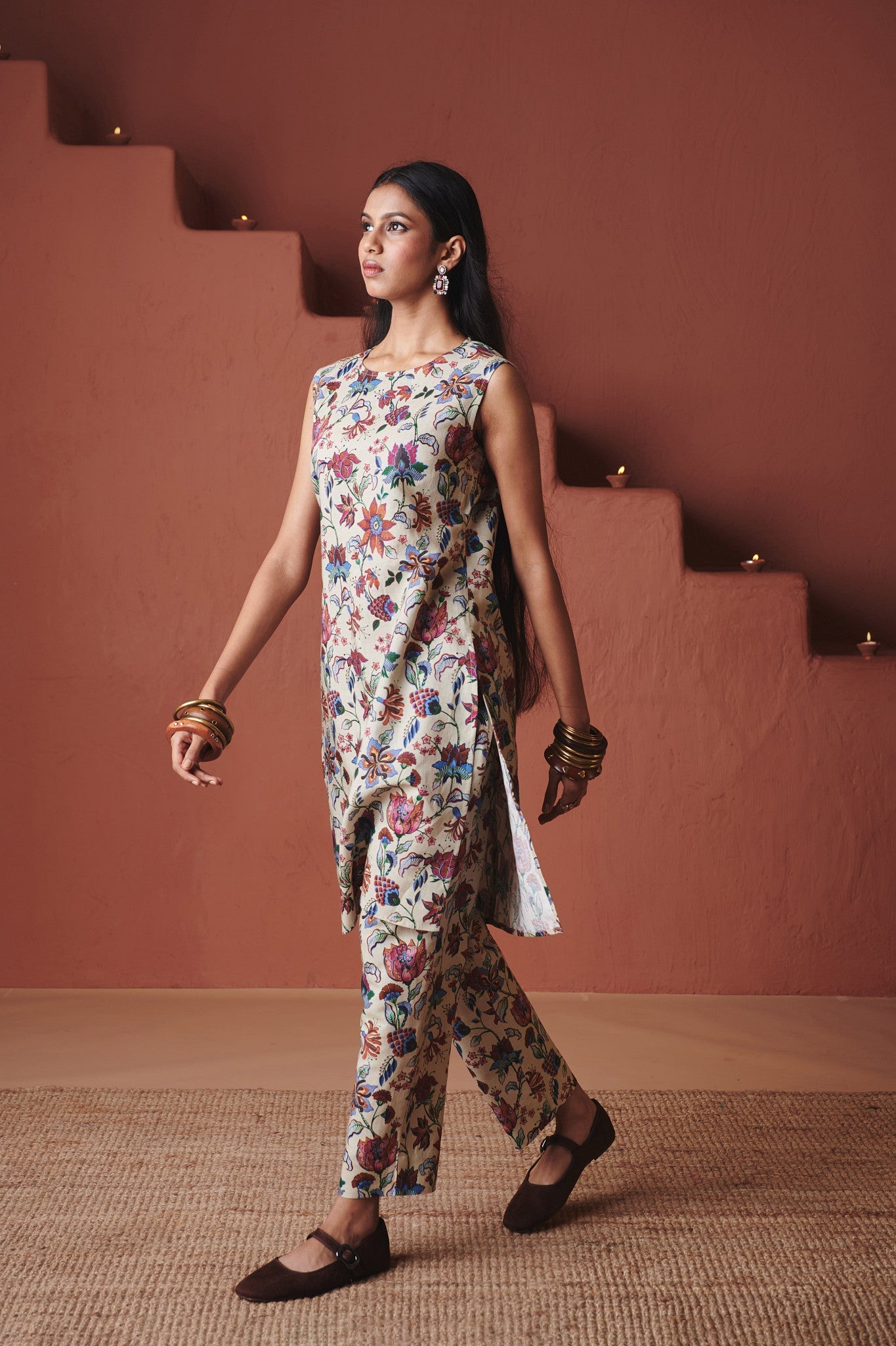 Beige Chintz Co-Linen Sleeveless Fitted Kurta Set
