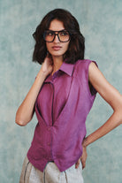 Berry Linen Sleeveless Double Placket Top