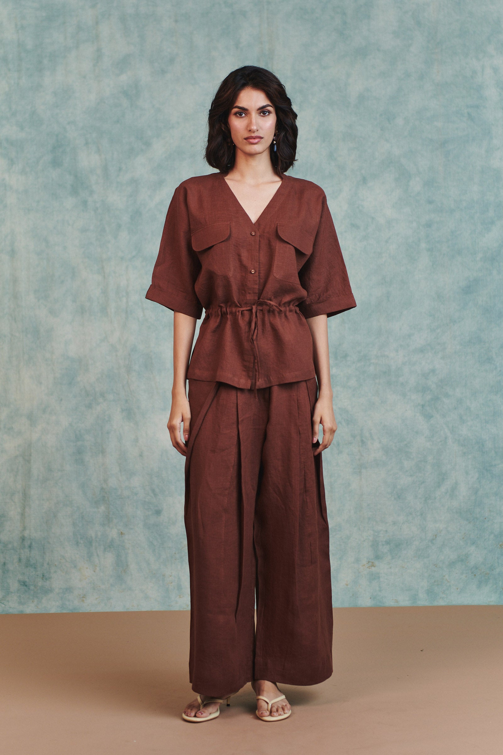 Chocolate Linen Drawstring Shirt