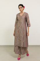 Kurta has hand emboirdery detailing, V neck, elbow length sleeves and side pockets