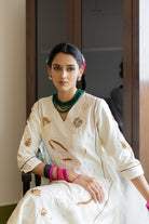 Kurta has hand emboirdery detailing, V neck, elbow length sleeves and side pockets