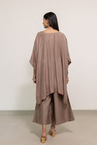 This mouse grey kaftan and pants set offers relaxed elegance with its flowy design and flattering fit. Adorned with subtle gold abstract handwork, it adds a refined shimmer to soft grey fabric. Perfect for festive occasions or stylish daywear.